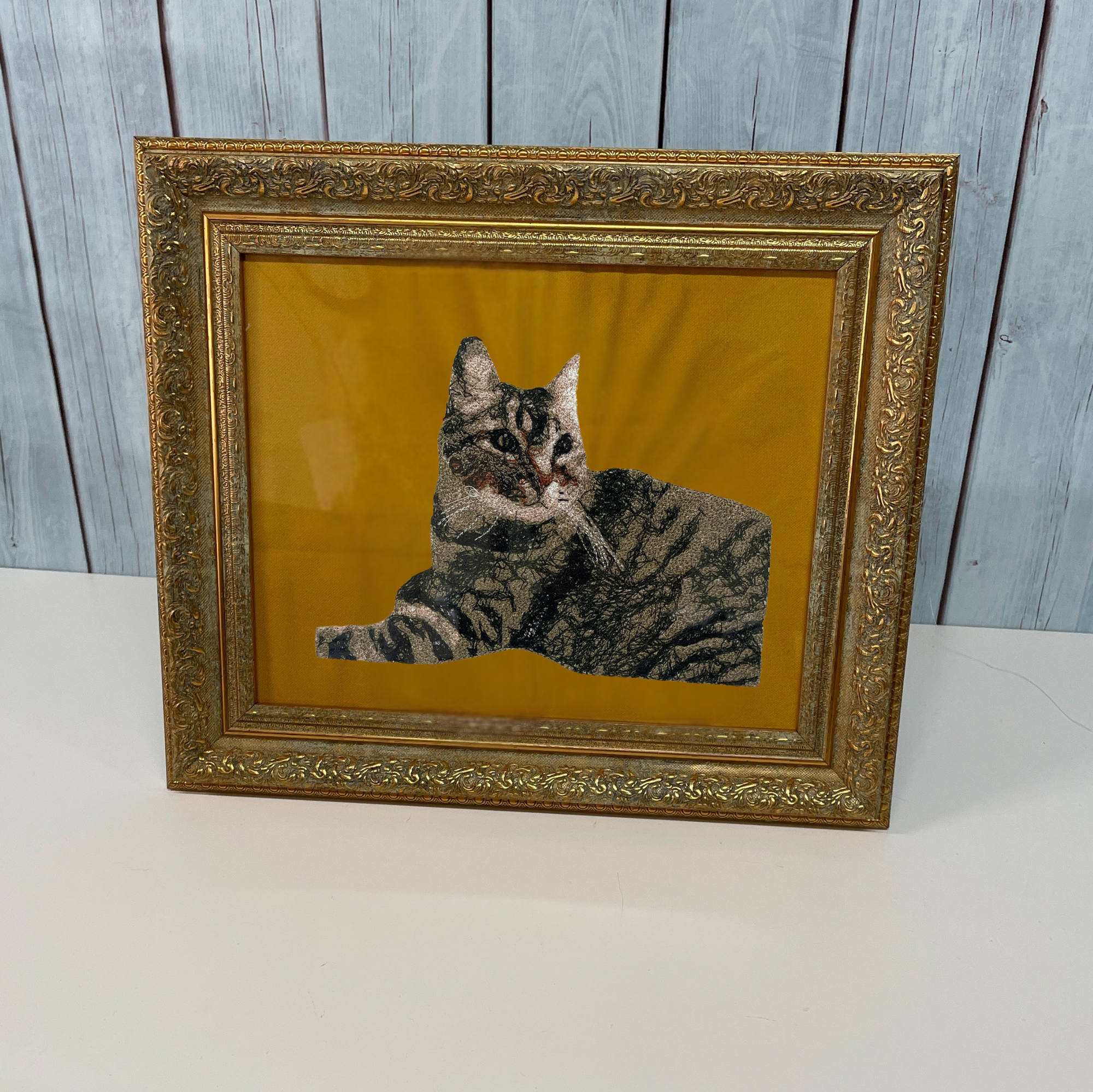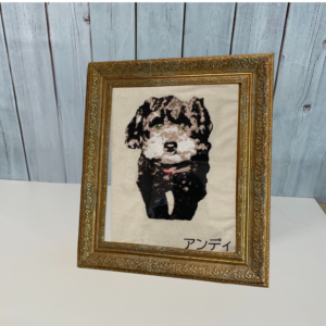 ”フォト刺繍額縁”世界にひとつを形に残す額縁 モデルのサイズはB5用紙(約18㌢×25㌢) お好きな形で名前入れもできます 額縁までついています!(額縁は在庫により仕様が変わる場合がございます) 刺繍で"大切な思い出を、いつまでもそばに" ご希望の方は下記のボタンからご注文ページへお進みください ご購入手続きへ進む 1.料金表 料金表を見る 2.制作の流れ ①お写真/データを送る ②デザイン確認 ③刺繡制作 ④完成品の発送 3.Q&A よくある質問 Q&A を見る 4.注意事項 ・色や質感は多少異なる場合がございます ・著作権のあるキャラクターなどはご遠慮ください ・写真/データはできるだけ明るくピントの合った画像をご用意ください。表情がわかるもの、毛並みがはっきりしている画像が理想的です ・ご家族やご友人などご本人以外のペット写真でもご注文いただけます。ただし、万が一肖像権やプライバシーに関するトラブルが発生した場合は当方では責任を負いかねますので、ご了承ください 6.修正対応について 下絵(デザイン)確認時に大きな修正があれば1回まで無料対応いたします。2回目以降は追加料金が発生する場合がございます うちの子刺繡ページに戻る